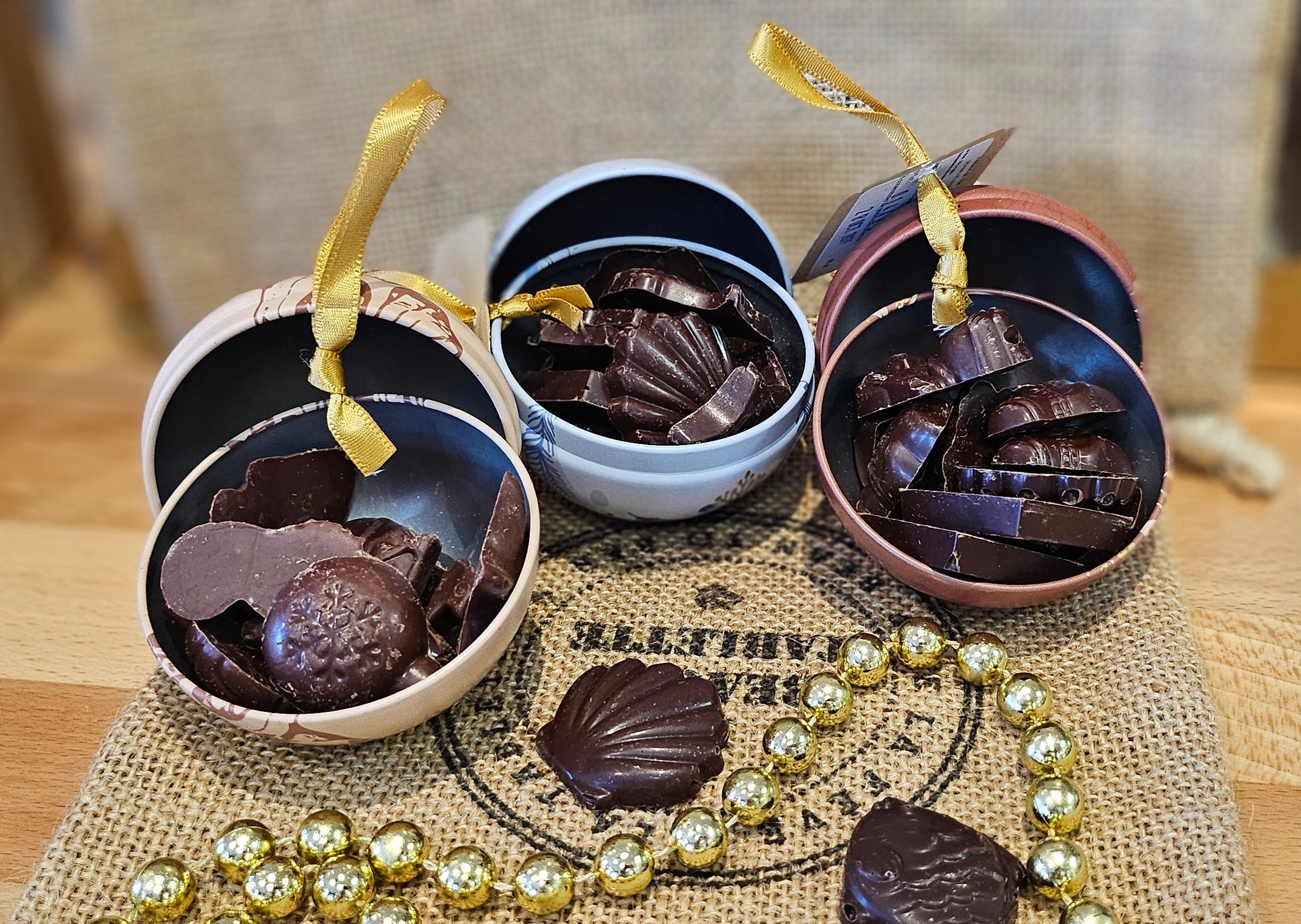 Pour décorer votre joli sapin de Noël avec une touche de surprise, découvrez nos magnifiques boules de Noël métalliques composées à l'intérieur de nos fritures de chocolats.