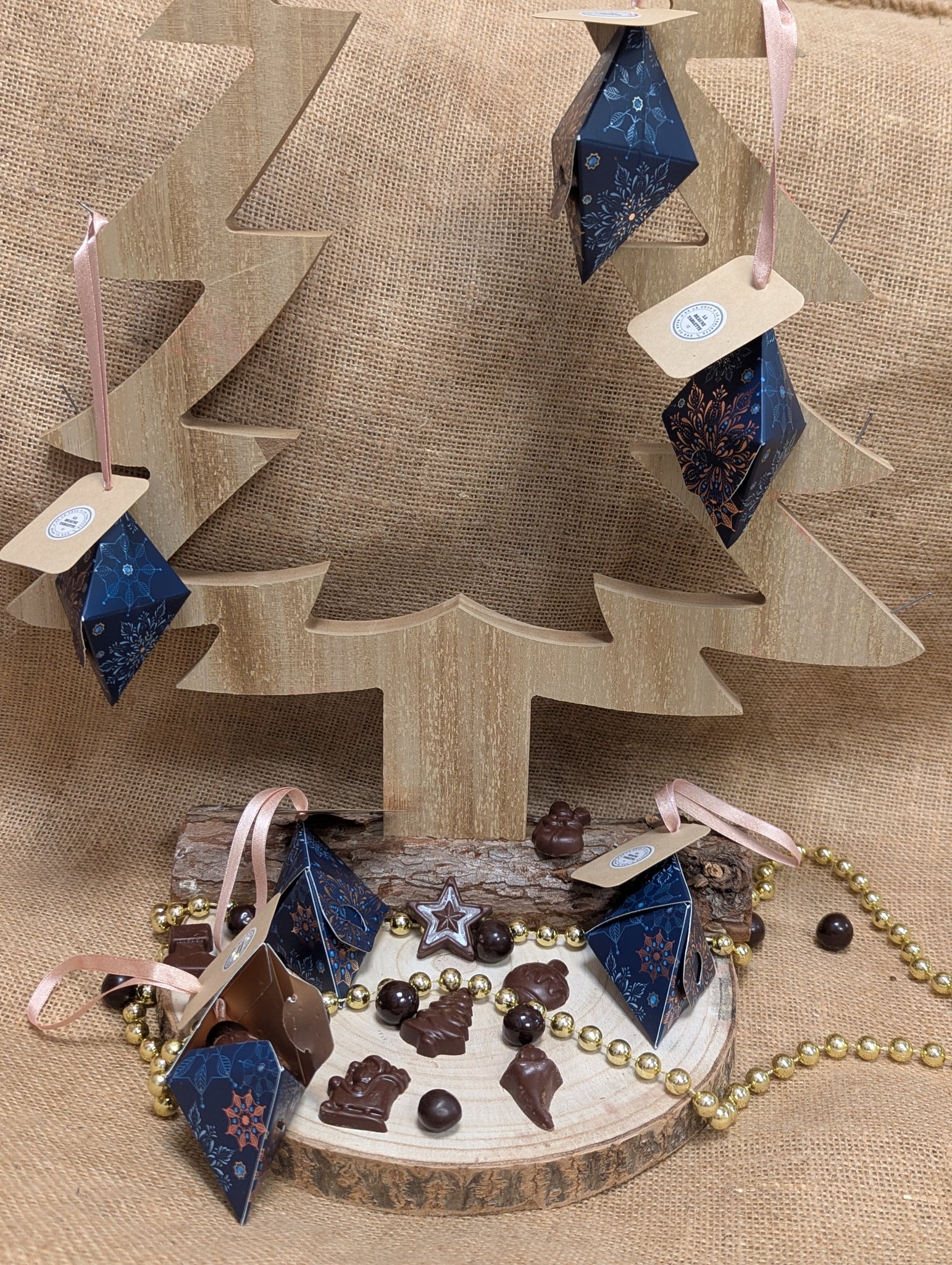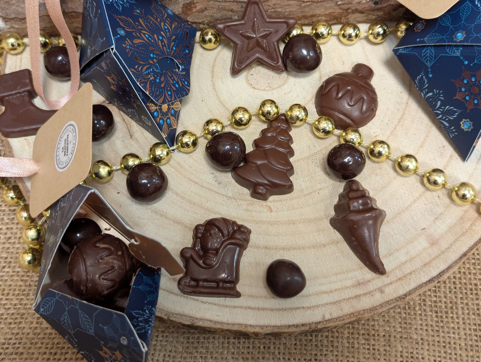 Ingrédient : chocolat gianduja (fèves de cacao du Vanuatu, sucre de canne, noisette) et Noisette entière enrobée de chocolat noir.